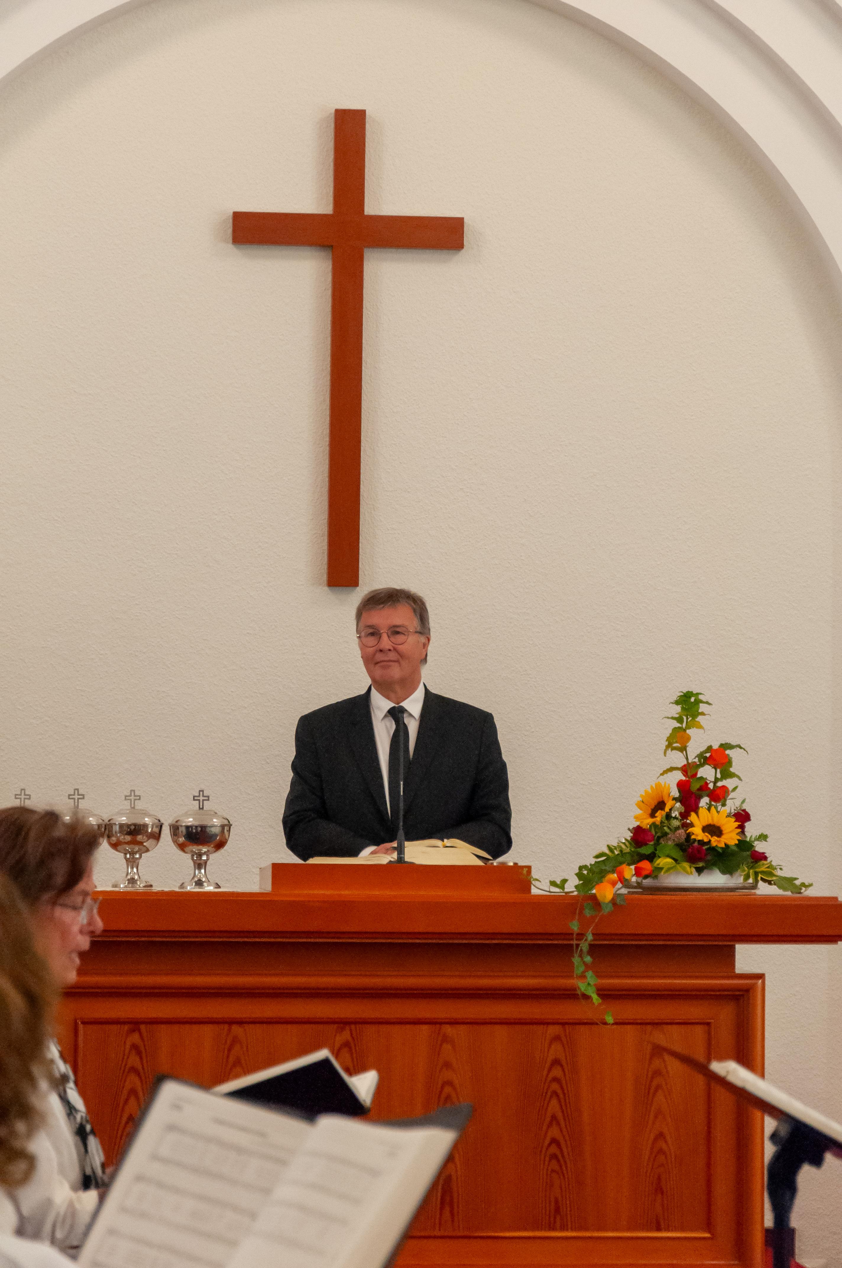 Apostel Dirk Schulz setzte mit seinem Dienen den Schlusspunkt der Predigt und leitete bereits zum Abendmahl hin.