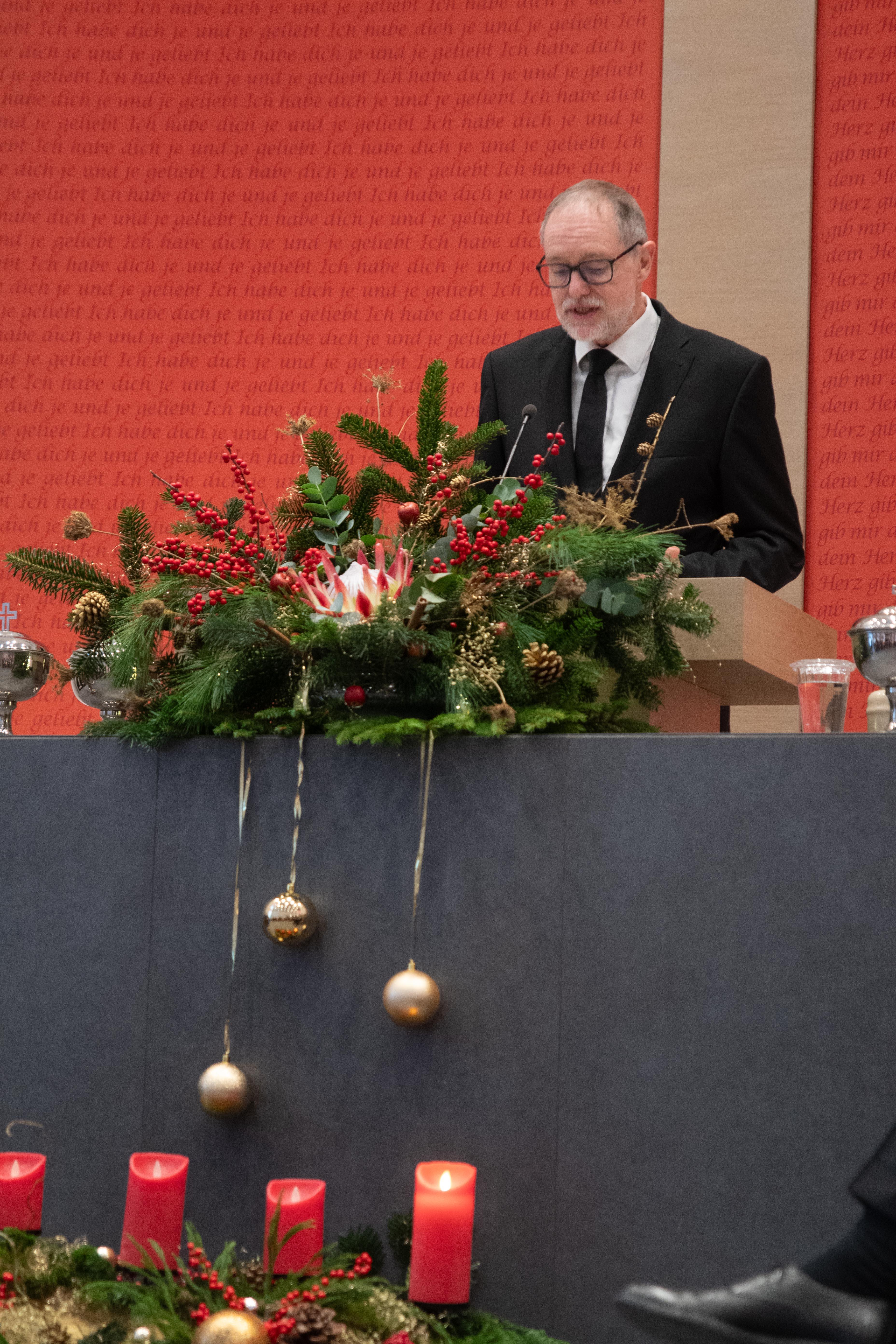 Unser Apostel Dirk Schulz besuchte am 1. Advent (30. November 2025) unsere Gemeinde aus einem besonderen Anlass. Unser langjähriger Vorsteher, Priester Uwe Jacob, wurde nach mehreren Jahrzehnten Tätigkeit als Amtsträger unserer Kirche in den wohlverdienten Ruhestand versetzt. Davon diente er die letzten elf Jahre als unser Gemeindevorsteher.